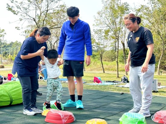 活動現場也展現了社區互助的溫情。其中一戶剛從加拿大返台的家庭,起初爸爸較為保守觀察,但在工作人員引導媽媽與孩子參與感統遊戲與互動後,全家人逐漸融入活動氛圍,展現出據點服務友善與包容的力量。 阿公店森林公園寬廣的環境,讓孩子能自在探索,也讓平時忙碌的家長能在放鬆的氛圍下交流育兒經。參與家庭表示,能在戶外與其他背景相近的家庭認識、分享經驗,讓教養之路不再孤單。 |